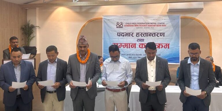 बालबालिकाका निमित्त गैरसरकारी संस्थाहरुको महासंघ नेपालले शुक्रबार आयोजना गरेको ११ औँ राष्ट्रिय महाधिवेशन तथा २५ औँ साधारण सभाबाट निर्वाचित कार्यसमिति सदस्यलाई पदभार हस्तान्तरण तथा सम्मान कार्यक्रममा बोल्दै उनले उक्त कुरा बताएका हुन् ।