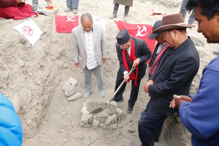 मुस्ताङ, २९ जेठ । नेपाल कम्युनिष्ट पार्टी (माओवादी केन्द्र)का अध्यक्ष तथा पूर्वप्रधानमन्त्री पुष्पकमल दाहाल ‘प्रचण्ड’ले घरपझोङ गाउँपालिका-४ भ्रप्सोस्थित पेरिस डाँडामा निर्माण हुने पार्टीे कार्यालय भवनको शिलान्यास गरेका छन् । बौद्ध परम्पराअनुसार उनले पार्टी शिलान्यास गरेका हुन् ।