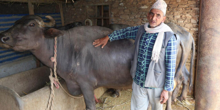 गलकोट (बागलुङ), २९ जेठ । बसाइँसराइले उजाडिएको जैमिनी नगरपालिका–८ को छिस्ती फुर्केसल्ला गाउँ । खण्डहर घर र बाझिएका खेतबारीको बीचमा एउटा मेहनती परिवार छ, जस्को कृषि कर्म साँच्चिकै लोभलाग्दो छ । आँगनैभरि मौरीका घार, गोठमा भैँसी र पाडापाडी, बारीमा व्यावसायिक घाँसखेती । यसैबाट गाउँमै सम्भावना खोजिरहेका छन्, रघुनाथ पौडेल ।