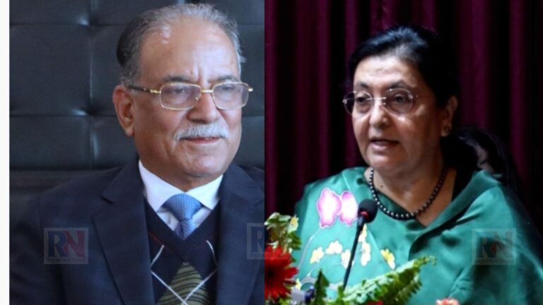 काठमाडौं, ३१ जेठ । नेकपा (माओवादी केन्द्र) का अध्यक्ष एवं पूर्व प्रधानमन्त्री पुष्पकमल दाहाल ‘प्रचण्ड’ ले पूर्व राष्ट्रपति र पूर्व उपराष्ट्रपतिलाई राजनीतिमा आउन संविधान र संसारको कुनै पनि परम्पराले नरोकेको बताएका छन् । आज (शनिबार) विराटनगरमा सञ्चारकर्मीहरुले राखेको जिज्ञासामा अध्यक्ष प्रचण्डले पूर्वराष्ट्रपति विद्यादेवी भण्डारीलक्षित गर्दै भने,‘पूर्व राष्ट्रपति, पूर्व उपराष्ट्रपति राजनीतिमा आउन चाहन्छन् भने पाउँछन् । संविधान र विश्वको कुनै परम्पराले रोक्दैन ।’