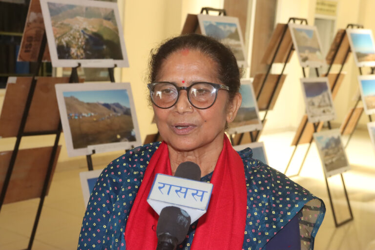 सभापति पन्तलाई राससका कार्यकारी अध्यक्ष धर्मेन्द्र झा र महाप्रबन्धक सिद्धराज राईले तस्बिरबारे जानकारी गराउँदै हिमाली सम्पदा र संस्कृतिको संरक्षण प्रवद्र्धनका साथै सरोकारवाला एवं नीतिनिर्माण तहमा ध्यानाकर्षण गराउन प्रदर्शनी उपयोगी हुने बताइन्।