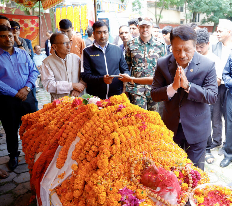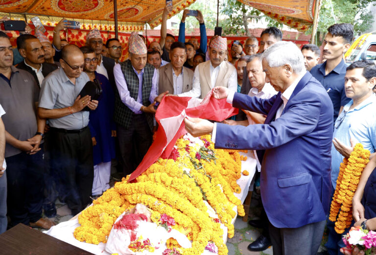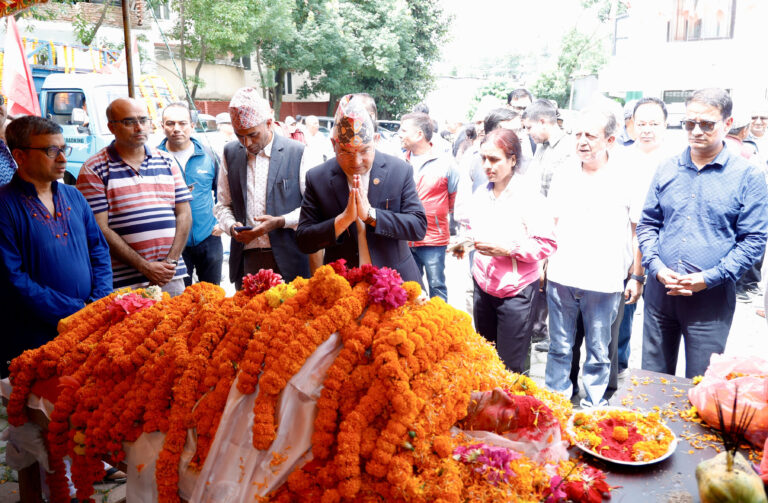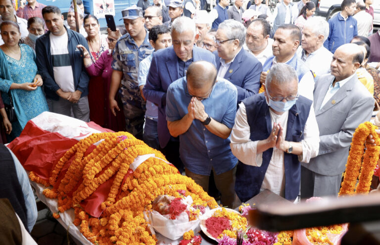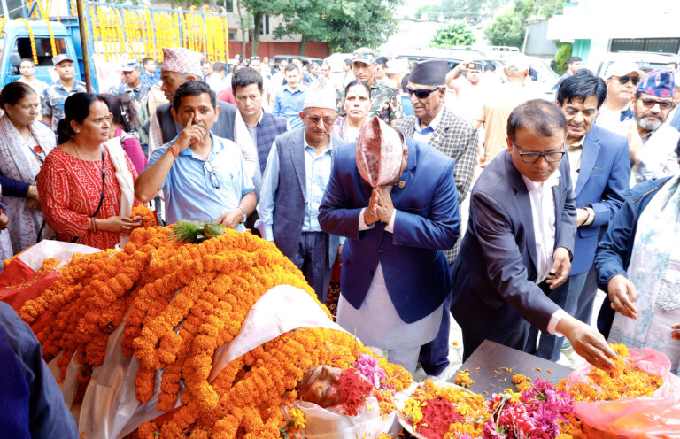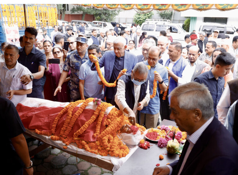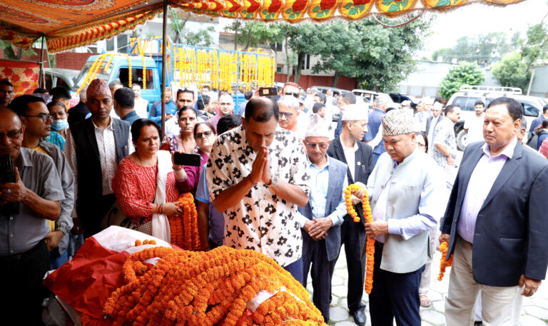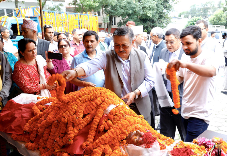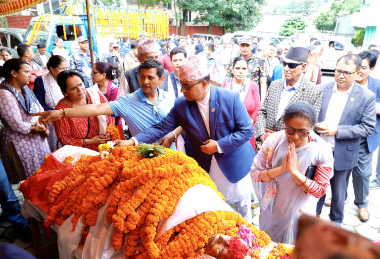 नेका पूर्वसांसद शास्त्री पौडेलको पार्थिव शरीरमा माल्यार्पण