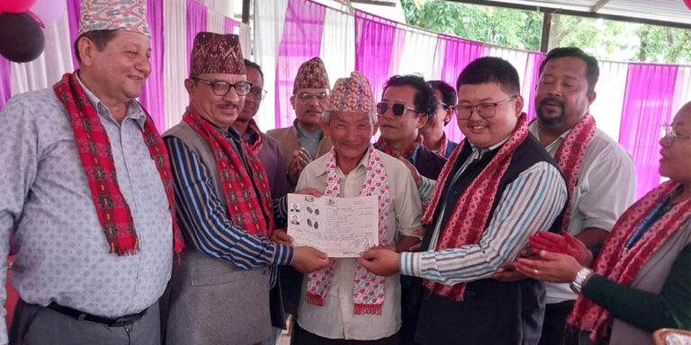 फिक्कल (इलाम), ५ असार । बुधबार दिउँसो चुलाचुली गाउँपालिकाको कार्यालय परिसरमा भेटिएका चुलाचुली–५ का ६५ वर्षीय भक्तबहादुर फागोको हर्षको सीमा थिएन । हँसिलो मुद्रामा उनी जग्गाधनी पुर्जा (लालपुर्जा) बोकेर साथीभाइहरुलाई देखाउँदै थिए । जन्मँदै भूमिहीन फागोले ६० को दशक पार गरेपछि जग्गाधनी पुर्जा हात पारेका हुन् ।