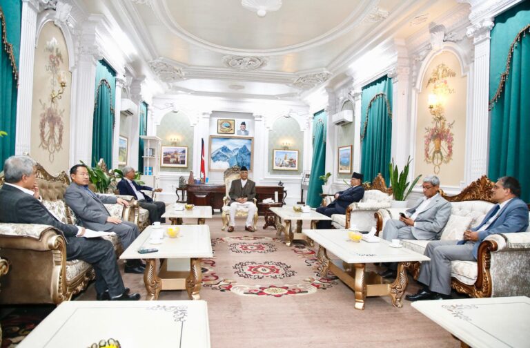 काठमाडौं, ६ असार । प्रधानमन्त्री केपी शर्मा ओलीले बोलाएको शीर्ष नेताहरुको बैठक सुरु भएको छ । संक्रमणकालीन न्यायसम्बन्धी विषयमा सरकार पक्ष र प्रमुख प्रतिपक्षी दलका नेताहरूबीच सिंहदरबारमा छलफल जारी रहेको हो ।