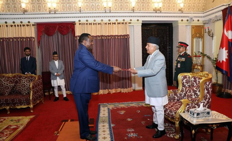 काठमाडौँ, ९ असार । राष्ट्रपति रामचन्द्र पौडेलसमक्ष नेपालका लागि नवनियुक्त राजदूतहरूले राष्ट्रपति भवनमा आज आयोजित छुट्टाछुट्टै विशेष समारोहमा आ–आफ्नो ओहोदाको प्रमाणपत्र पेश गरेका छन् ।