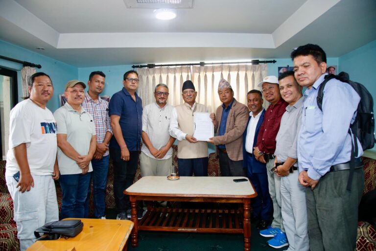 काठमाडौं, १२ असार । नेकपा (माओवादी केन्द्र) का अध्यक्ष तथा पूर्व प्रधानमन्त्री पुष्पकमल दाहाल ‘प्रचण्ड’ समक्ष धरानका प्रमुख राजनीतिक दलहरू-नेपाली कांग्रेस, नेकपा (एमाले), माओवादी केन्द्र र जनता समाजवादी पार्टीका प्रतिनिधिहरूले संयुक्तरूपमा ज्ञापनपत्र बुझाएका छन्।