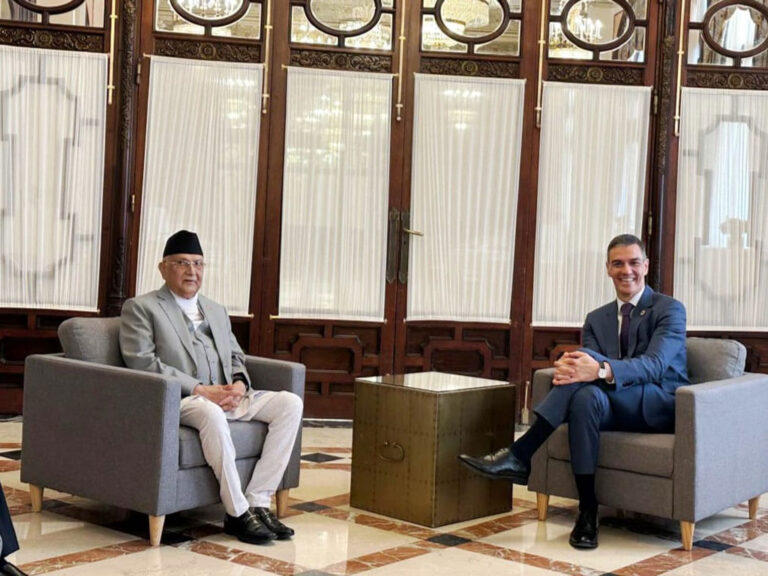 सेभियास्थित रोयल अल्काजरमा आयोजित रात्रिभोजमा प्रधानमन्त्री ओली र प्रथम महिला राधिका शाक्य सहभागी भएका हुन्। प्रधानमन्त्री ओली र स्पेन सरकारका अध्यक्ष (प्रधानमन्त्री) पेड्रो साञ्चेजबीच आज द्विपक्षीय भेटवार्ता भइसकेको छ ।