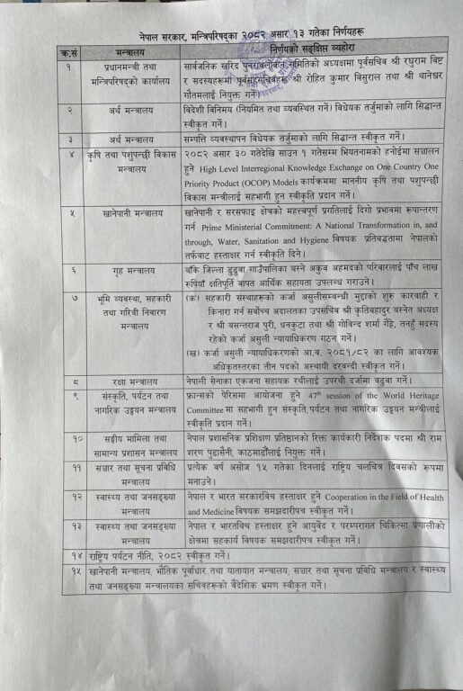 मन्त्रिपरिषद्को निर्णयः नियुक्ति, बढुवा र मन्त्रीको विदेश भ्रमण स्वीकृतिसम्म
