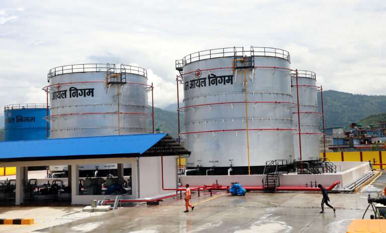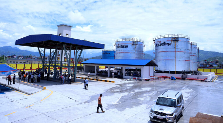 पोखरा, १९ असार । नेपाल आयल निगमद्वारा पोखरा अन्तर्राष्ट्रिय विमानस्थल परिसरमा निर्माण सम्पन्न भइसकेको हवाई इन्धन डिपोको अवस्था तथा प्रविधिगत पक्षहरूबारे आज पत्रकार सम्मेलनमार्फत जानकारी गराइँदै । तस्बिरः राधिका कँडेल/रासस