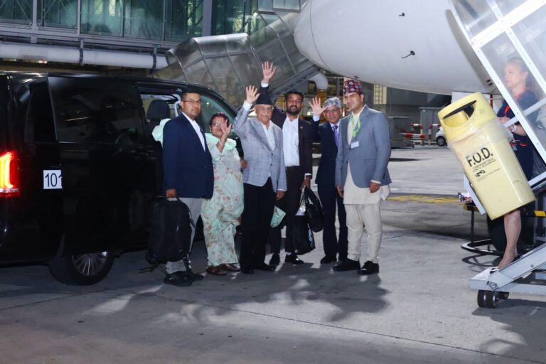 काठमाडौं, २० असार । स्पेनको औपचारिक भ्रमणमा रहेका प्रधानमन्त्री केपी शर्मा ओली स्वदेश फर्कने क्रममा आज कतारको दोहा प्रस्थान गरेका छन् । प्रधानमन्त्री ओली मेड्रिडस्थित अडोल्फो सौरेज बराजाज विमानस्थलबाट स्थानीय समयअनुसार राति ११ बजे दोहा प्रस्थान गरेका हुन् ।