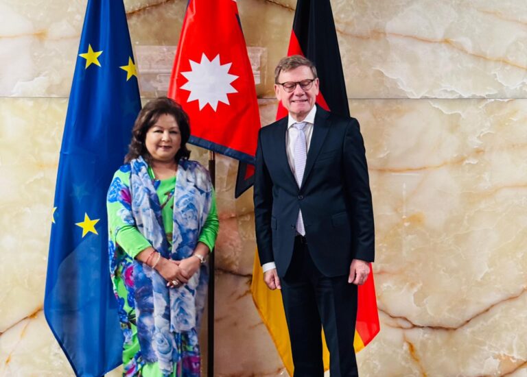 काठमाडौं, २४ असार । जर्मन भ्रमणमा रहेकी परराष्ट्रमन्त्री डा. आरजु राणाले जर्मनका आफ्ना समकक्षी जोहान डेबिड वेडफुलसँग भेटवार्ता गरेकी छिन् । जमर्नको बर्लिनमा भएको भेटवार्तामा दुई देशबीचको सम्बन्धको विकासमा छलफल भएको हो ।