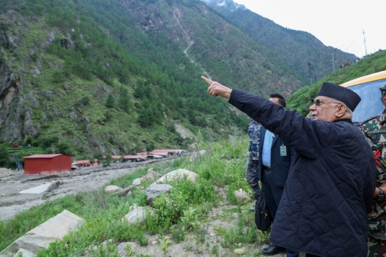 प्रधानमन्त्री ओलीबाट रसुवा र नुवाकोटको बाढी प्रभावित क्षेत्रको अवलोकन