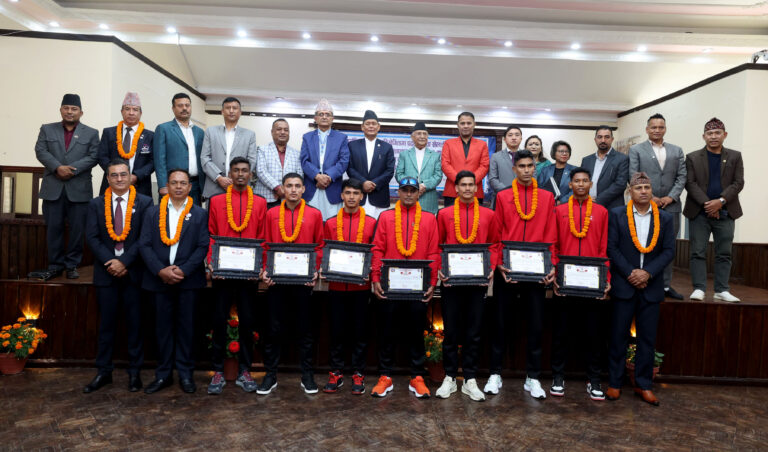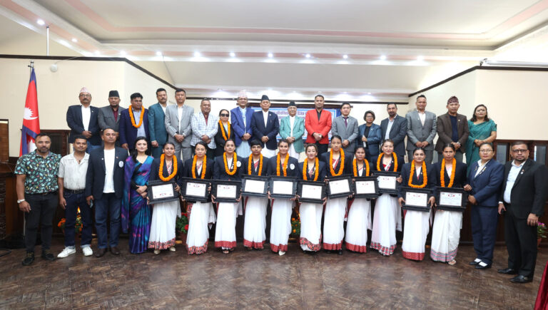 काठमाडौँ, २५ असार । प्रधानमन्त्री केपी शर्मा ओलीले विभिन्न अन्तरराष्ट्रिय प्रतियोगितामा पदक प्राप्त खेलाडी र सम्बद्ध प्रशिक्षक तथा व्यवस्थापकलाई आज सम्मान र पुरस्कार प्रदान गरेका छन् ।