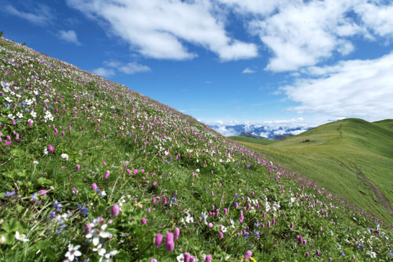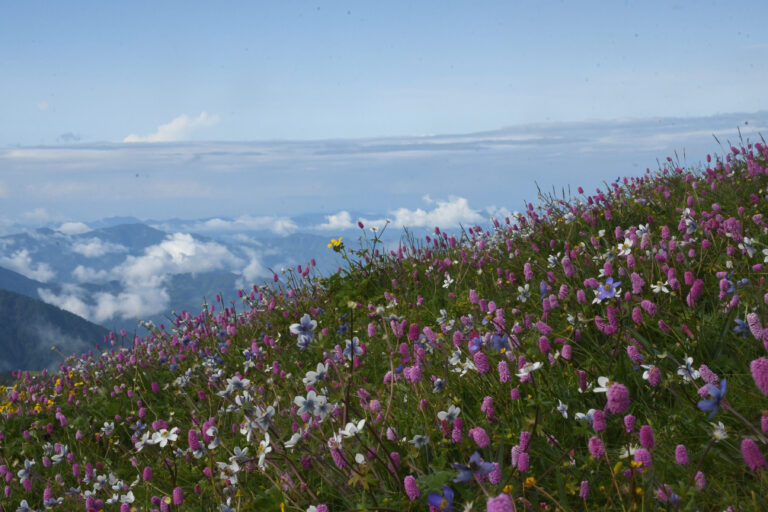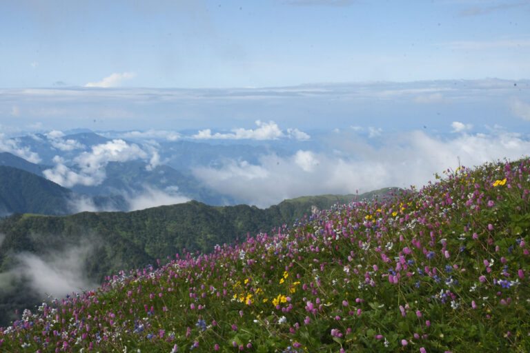 दाङ, २६ असार । रुकुम पूर्व, भूमे गाउँपालिका–१ स्थित समुद्र सतहबाट करिब चार हजार मिटरको उचाइमा रहेको रमणीयस्थल चौँरीखर्कमा रङ्गीचङ्गी बनफूलहरूले ढकमक्क ढाकिएको हरियाली डाँडा ।