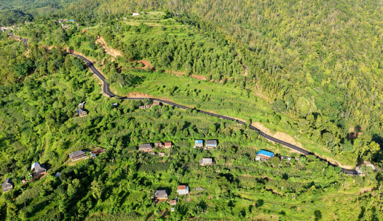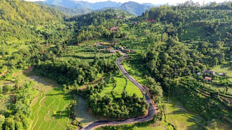 बन्दीपुर (तनहुँ) ,२६ असार। तनहुँको बन्दीपुर गाउँपालिका-२ स्थित (बन्दीपुर – भुमर्से -ढाडखोला) सडकखण्ड र आसपासको हरियाली दृश्य ।