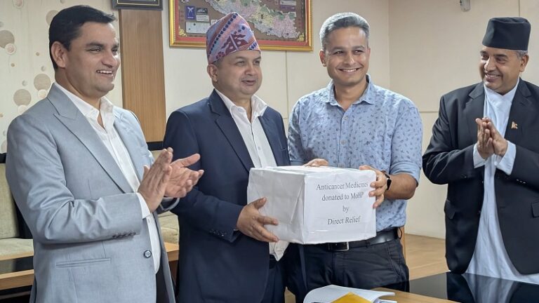 डाइरेक्ट रिलिफले स्तन, छाला तथा विभिन्न खालका क्यान्सर उपचारमा आवश्यक पर्ने दुर्लभ र महङ्गा औषधी नेपालको आवश्यकताअनुसार पाँच वर्षसम्म सहयोग स्वरुप उपलब्ध गराउने मन्त्री पौडेलले जानकारी दिए ।