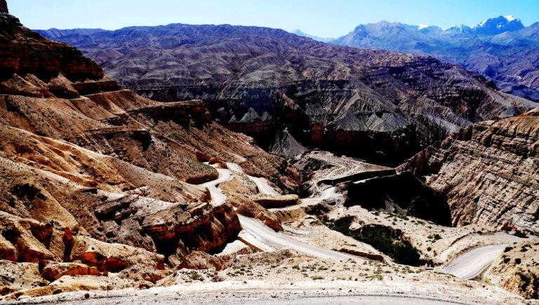 मुस्ताङ, २९ असार । राष्ट्रिय गौरवको जोमसोम-कोरला सडकअन्तर्गत उपल्लो मुस्ताङको लोघेकर दामोदरकुण्ड-२ स्याङवचेस्थित कोरला सडक । तस्बिरः सुन्दरकुमार थकाली/रासस