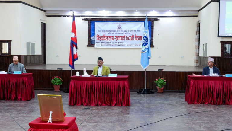 प्रधानमन्त्री निवास, बालुुवाटारमा आज प्रधानमन्त्री एवं कुलपति केपी शर्मा ओलीका अध्यक्षतामा भएको बैठकमा कुलसचिव प्रा माधव अधिकारीद्वारा प्रस्तुत भौतिक विकाससम्बन्धी लक्ष्य र कार्यक्रममा आधारित आय–व्ययको बजेट पारित भएको हो ।