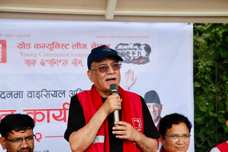 काठमाडौैं, १ साउन । नेकपा (माओवादी केन्द्र) का अध्यक्ष एवं पूर्व प्रधानमन्त्री पुष्पकमल दाहाल ‘प्रचण्ड’ ले देश सुशासन, सामाजिक न्याय र समृद्धिका दृष्टिकोणले निकै जटिल मोडमा रहेको बताएका छन् । आज (बिहीबार) पार्टीको सहायक संगठन वाईसीएल नेपालले सुरु गरेको श्रम अभियानमा सहभागी प्रचण्डले वर्तमान सरकार देशलाई असफल बनाउने दिशातिर अगाडि बढेको बताए । उनले सरकारले टेक्ने हरेक ठाउँमा भ्रष्टाचारबाहेक अरु केही पनि नरहेको बताए ।