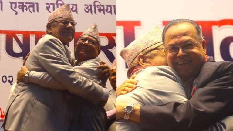 काठमाडौं, २ साउन । माधव कुमार नेपाल नेतृत्वको नेकपा (एकीकृत समाजवादी) र वामदेव गौतम नेतृत्वको नेकपा एकता राष्ट्रिय अभियानबीच एकता भएको छ । आज (शुक्रबार) दुई पार्टीबीच राष्ट्रिय सभागृहमा आयोजित एक समारोहमा एकता घोषणा भएको हो ।