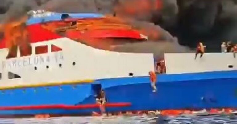 इन्डोनेसियाली तट रक्षकका अनुसार केएम बार्सिलोना–५ को जहाजमा आइतबार आगलागी भएको थियो ।