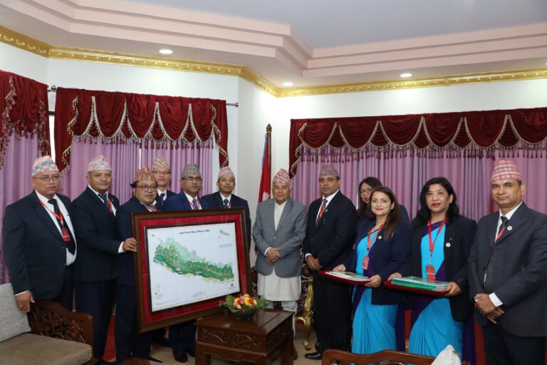 वन तथा वातावरण मन्त्रालय वन अनुसन्धान तथा प्रशिक्षण केन्द्रद्वारा प्रकाशित सो भूक्षेत्र नक्सा केन्द्रका निर्देशक डा राजेन्द्र केसीले राष्ट्रपति पौडेललाई प्रदान गरेका थिए ।