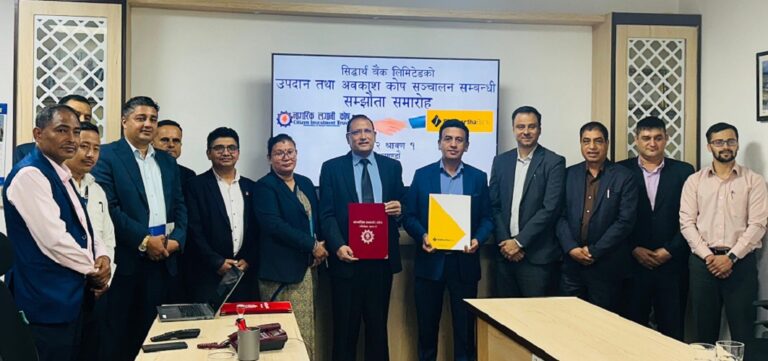 काठमाडौं । नागरिक लगानी कोष र सिद्धार्थ बैंक लिमिटेडबीच उपदान तथा अवकाश कोष सञ्चालन सम्बन्धी सम्झौता भएको छ । सम्झौतामा कोषको तर्फबाट कार्यकारी निर्देशक पर्वतकुमार कार्की र बैंकको तर्फबाट प्रमुख कार्यकारी अधिकृत सुन्दर प्रसाद कँडेलले हस्ताक्षर गरेका हुन् ।