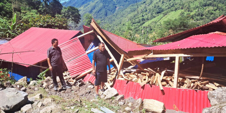 खाँदबारी (सङ्खुुवासभा), ७ साउन । सङ्खुवासभाको भोटखोला गाउँपालिका–४ स्थित जिजिङ्गखा टोलमा मङ्गलबार राति आएको पहिरोले पाँच घर प्रभावित भएका छन् । पहिरोमा ढुङ्गामाटोसहितको ठूलो ढिस्को खस्दा एउटा घर पूर्णरूपमा क्षति भएको छभने एउटा घरमा आंशिक क्षति भएको हो ।