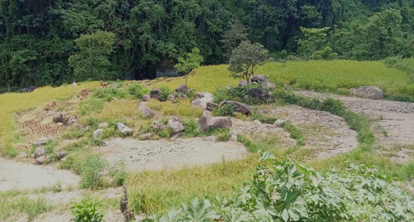 भोजपुर, ८ साउन । खेतमा बाढी पस्दा भोजपुरको कावा खोला आसपास थन्काउने बेलाको बर्खे (साउने) धानबालीमा क्षति पुगेको छ । सडक विस्तारका क्रममा नाली व्यवस्थित नगरिँदा सडकको पानी खेतमा पसेपछि बालीमा क्षति पुगेको हो ।