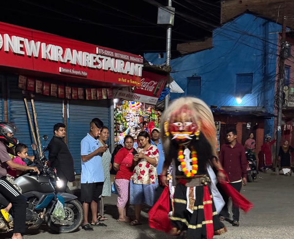 हरेक दिन साँझ ६ बजेदेखि तीन घण्टा लाखे नाच देखाइने छ । काठमाडौँ उपत्यकामा प्रचलित लाखे नाच पाल्पासहित अन्य स्थानमा पनि विस्तार हुने क्रममा छ । तानसेनसहित नेवार बस्ती भएका रामपुर, सराई, हार्थोक, आर्यभन्ज्याङमा पनि लाखेनाच नाचिने परम्परा रहेको छ । रासस