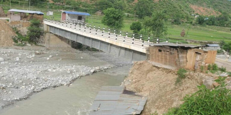 मन्थली (रामेछाप), साउन ११ गते । सदरमुकाम मन्थलीसहित रामेछापका विभिन्न चारवटा पालिका जोडने र जिल्लालाई काठमाडौँसम्म जोड्ने वैकल्पिक मार्गका रूपमा रहेको भटौली खोलाको पक्की पुल खोलाले कटान गर्दै जान थालेको छ ।