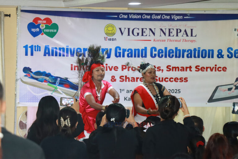 काठमाडौं, १६ साउन । विगेन नेपालले ११औं वार्षिकोत्सव धुमधामको साथ मनाएको छ । शुक्रबार काठमाडौंमा एक कार्यक्रमको आयोजना गरी केक काटेर वार्षिकोत्सव मनाइएको हो । वार्षिकोत्सव समारोहमा विगेन कोरियाका संस्थापक अध्यक्षदेखि लिएर दर्जनौं शुभचिन्तक र अतिथिहरुको सहभागिता रहेको थियो ।