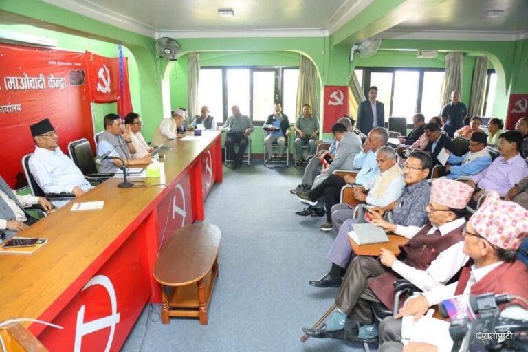 काठमाडौं, १७ साउन । नेकपा (माओवादी केन्द्र) को स्थायी कमिटी बैठक जारी छ । पार्टी मुख्यालय पेरिसडाँडामा जारी बैठकमा नेताहरुले आफ्नो धारणा राख्ने क्रम जारी छ । हिजोबाट सुरु भएको बैठक भोलि सम्पन्न हुने भनिएको छ ।