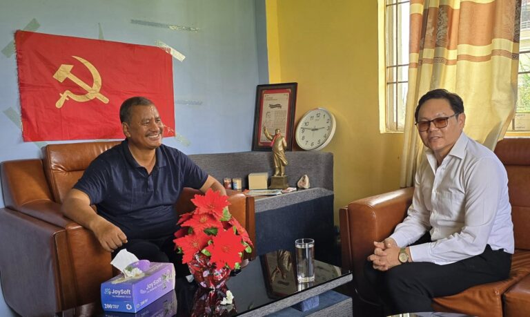 काठमाडौं, १७ साउन । नेकपा (माओवादी केन्द्र) का नेता एवं पूर्वमन्त्री सुदन किराती र नेपाल कम्युनिष्ट पार्टीका महासचिव नेत्रविक्रम चन्द ‘विप्लव’ बीच भेटवार्ता भएको छ । विप्लव भेट्न किराती आज ललितपुरस्थित उनको निवास हात्तिवन पुगेका थिए । भेटका क्रममा नेता किरातीले विप्लवलाई जनयुद्धका प्रथम सहिद दिलबहादुर रम्तेलको फोटो फ्रेम गरिएको आँखिझ्याल प्रदान गरे । भेटमा समसामयिक विषयमा छलफल भएको किरातीले बताए ।