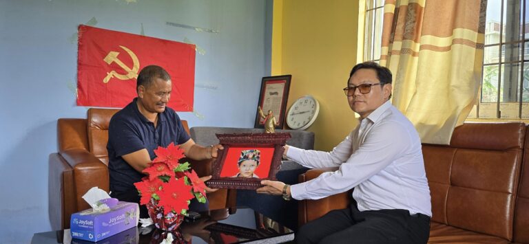 काठमाडौं, १७ साउन । नेकपा (माओवादी केन्द्र) का नेता एवं पूर्वमन्त्री सुदन किराती र नेपाल कम्युनिष्ट पार्टीका महासचिव नेत्रविक्रम चन्द ‘विप्लव’ बीच भेटवार्ता भएको छ । विप्लव भेट्न किराती आज ललितपुरस्थित उनको निवास हात्तिवन पुगेका थिए । भेटका क्रममा नेता किरातीले विप्लवलाई जनयुद्धका प्रथम सहिद दिलबहादुर रम्तेलको फोटो फ्रेम गरिएको आँखिझ्याल प्रदान गरे । भेटमा समसामयिक विषयमा छलफल भएको किरातीले बताए ।