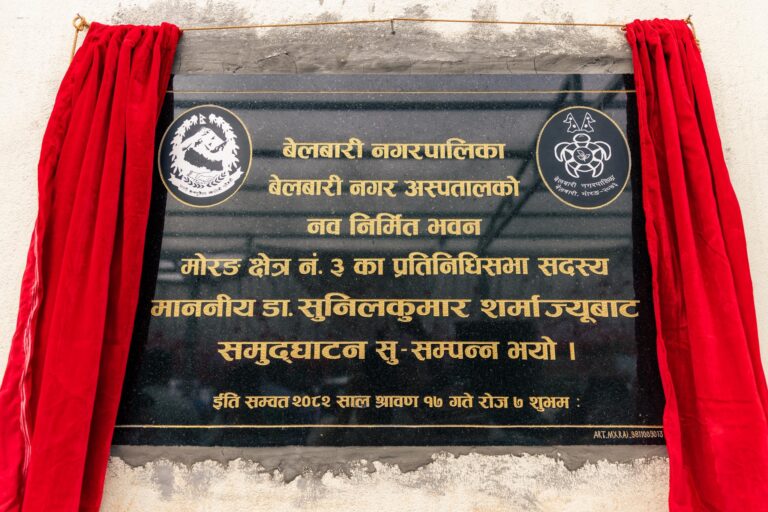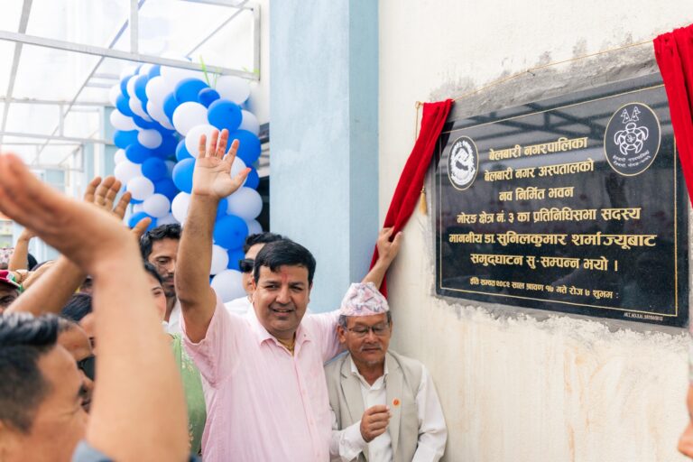 काठमाडौँ, १८ साउन । बेलबारी नगरपालिका–१ मा सञ्चालनमा रहेको नगर अस्पताल अब बेलबारी–४ बुधबारेमा सरेको छ। शनिबार बिहान आयोजित एक कार्यक्रमबीच मोरङ क्षेत्र नं. ३ का संघीय सांसद डा. सुनिल शर्माले अस्पतालको नयाँ भवन उद्घाटन गरेका हुन्।