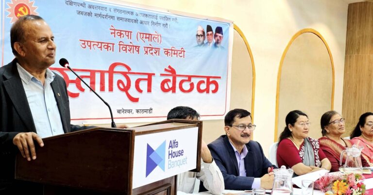 काठमाडौं, १९ साउन । प्रमुख सत्तारूढ दल नेकपा (एमाले) का महासचिव शंकर पोखरेलले पार्टी र नेतृत्वमाथि भइरहेको चौतर्फी आक्रमणको सामूहिक प्रतिवाद आवश्यक रहेको औंल्याएका छन् । पार्टीको उपत्यका विशेष प्रदेश कमिटीको विस्तारित बैठकलाई काठमाडौंमा सम्बोधन गर्दै महासचिव पोखरेलले अहिले नेकपा ९एमाले० र पार्टी अध्यक्ष केपी शर्मा ओली प्रहारको निशाना बनेको बताएका हुन् ।