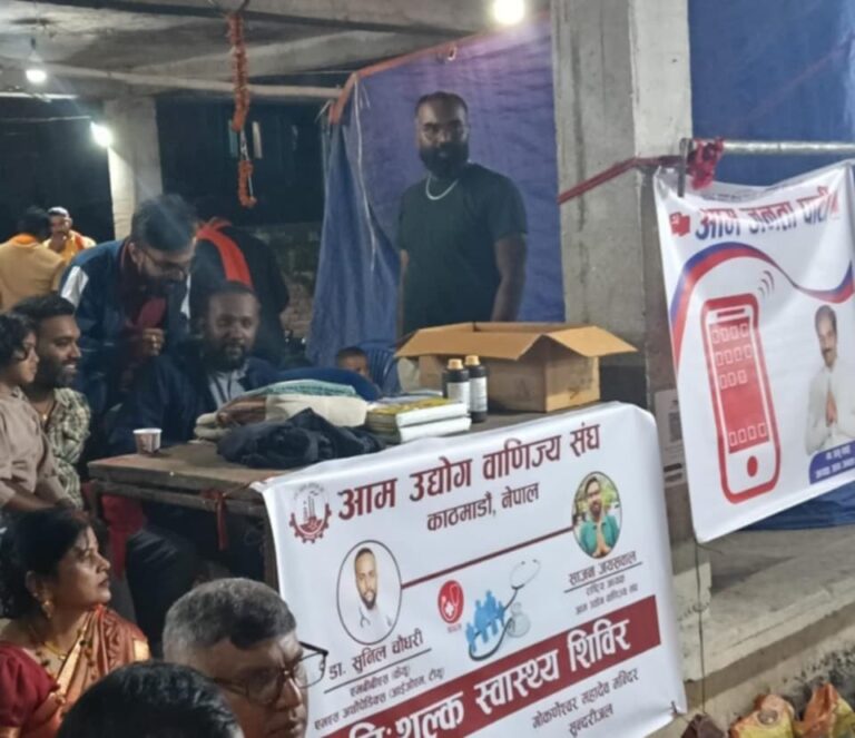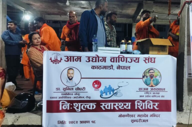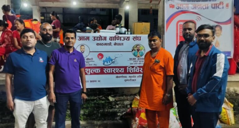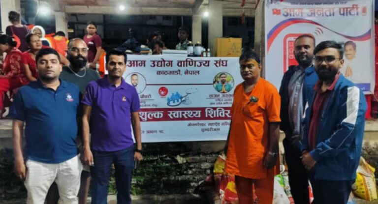 काठमाडौं, १९ साउन । आम जनता पार्टी (आजपा) निकटको आम उद्योग बाणिज्य संघको आयोजनामा निःशुल्क स्वास्थ्य शिविर सम्पन्न भएको छ ।
