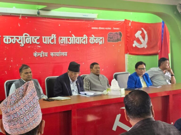 काठमाडौं, १९ साउन । नेकपा (माओवादी केन्द्र) का अध्यक्ष पुष्पकमल दाहाल ‘प्रचण्ड’ ले पार्टी स्थायी समिति बैठकमा सबैखाले गुटबन्दीको अन्त्य गर्ने संकल्प गरिएको बताएका छन् । बैठकबाट बाहिरिने क्रममा सञ्चारकर्मीहरुसँग संक्षिप्त कुराकानी गर्दै उनले पार्टी थप एकतावद्ध भएको बताए ।
