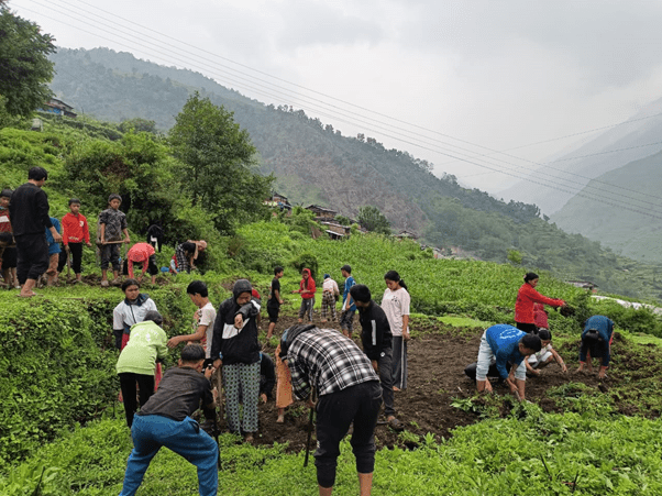 “गत हप्ता कक्षा ८, ९ र १० का विद्यार्थीका साथै शिक्षकले खाली समयमा श्रमदान गरेर जग्गा तयार गरेर तरकारीका बिरुवा लगाएका छौँ”, उनले भने, “बाँकी एक रोपनी जमिनमा प्याजका बिरुवा उत्पादन गरेर बिक्री गर्ने योजना छ ।”