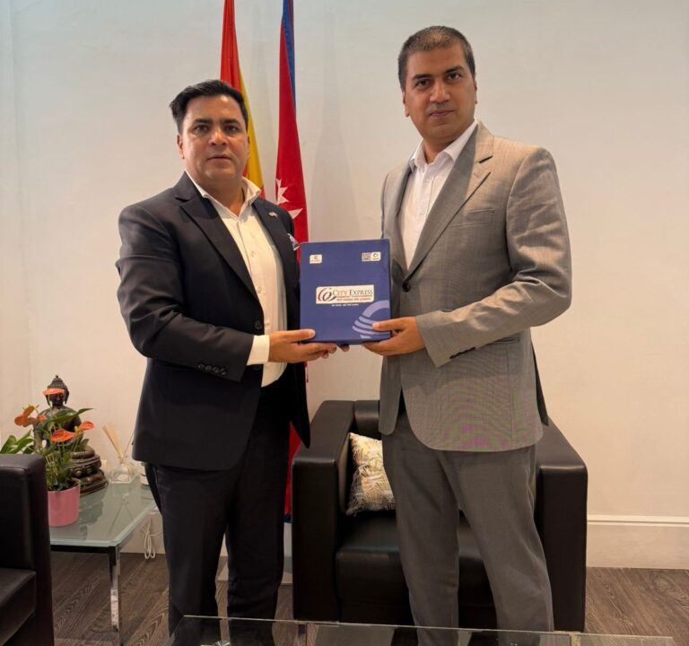 काठमाडौं, २३ साउन । सिटी एक्सप्रेस मनि ट्रान्सफरका संस्थापक, ग्लोबल बिजिनेस तथा डायस्पोरा समिती (सिएनआई) का सभापति, तथा नेपालका लागि केन्याका अवैतनिक वाणिज्यदूत चन्द्र टण्डन र स्पेनस्थित नेपाली राजदूत महामहिम शनिल नेपालबीच भेटवार्ता भएको छ । भेटमा बिदेशी प्रत्यक्ष लगानी भित्र्याउनका लागि आवश्यक रणनीतिबारे छलफल भएको थियो ।