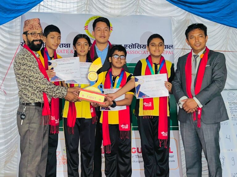 संस्कार गुरूकूलको संचालक एवं प्रिन्सिपल अमन हितागंको सभापतित्वमा सम्पन्न अग्रेजी हिज्जे प्रतियोगितामा प्रमुख अतिथि नेसनल प्याव्सन भक्तपुरका अध्यक्ष संजय खड्काले विजेता विद्यार्थीहरुलाई शिल्ड, मेडल र प्रमाण पत्र वितरण गरेका थिए ।