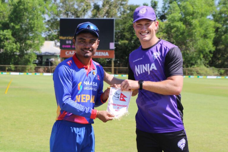 काठमाडौँ, ३ भदौ । अस्ट्रेलियामा जारी टप एन्ड टी–२० श्रृङ्खलाअन्तर्गत नेपालले आफ्नो चौथो खेलमा होबर्ट हुरिकेन्सविरुद्ध ब्याटिङ गरिरहेको छ ।