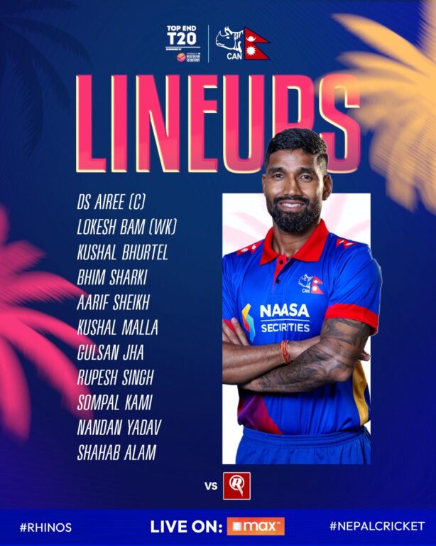 काठमाडौँ, ४ भदौ । अष्ट्रेलियाको नर्दन टेरिटोरीमा जारी टप एण्ड टी–२० सिरिजअन्तर्गत आफ्नो पाँचौँ मेलबर्न रेनेगेड्स एकेडेमी विरुद्धको खेलमा नेपालले टस जितेर पहिला ब्याटिङ रोजेको छ ।