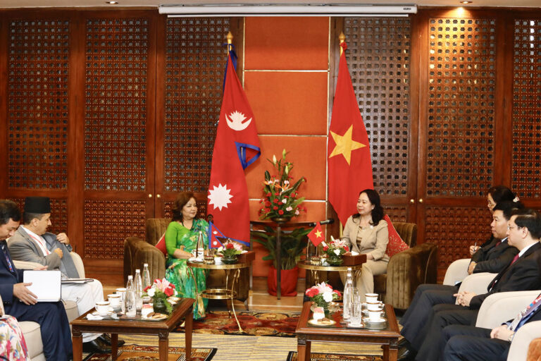 काठमाडौँ, ७ भदौ । समाजवादी गणतन्त्र भियतनामका उपराष्ट्रपति भो थि आन सुआनसँग परराष्ट्रमन्त्री डा.आरजु राणा देउवाले शिष्टाचार भेटवार्ता गरेकी छन् । उपराष्ट्रपति रामसहायप्रसाद यादवको मैत्रीपूर्ण निमन्त्रणामा नेपालको तीनदिने औपचारिक भ्रमणका लागि काठमाडौँ आएकी उपराष्ट्रपति भोसँग मन्त्री डा.राणाले भेटवार्ता गरेकी हुन् ।
