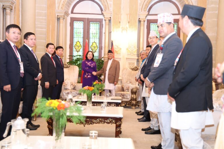 यसअघि आजै उपराष्ट्रपति रामसहायप्रसाद यादव र उपराष्ट्रपति भो थि आन सुआनबीच भेट भएको थियो । उनी भ्रमण पूरा गरेर भदौ ९ गते स्वदेश फर्कने तालिका छ । तस्बिर: दिनेश भण्डारी/प्रधानमन्त्रीको सचिवालय
