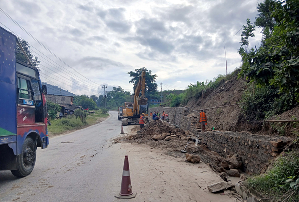 विस्तारको क्रममा रहेको पृथ्वीराजमार्गमा पानी परेको बेला कतिखेर कहाँनेर पहिरोले बाटो थुनिने हो पत्तो हुँदैन । डोजरले खारिएका भित्ताबाट झर्ने ढुङ्गामुढाबाट जोगिन धौधौ पर्छ ।