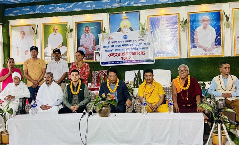 काठमाडौं, १२ भदौ । काठमाडौंको मध्य बानेश्वरमा बनेको कवीर सत्संग आश्रमको भवन उपप्रधानमन्त्री एवं सहरी विकासमन्त्री प्रकाशमान सिंहले समुद्घाटन गरेका छन्। सद्गुरू आज्ञा साहेवको पुण्य स्मृति दिवस पारेर झन्डै ३ करोड रुपैयाँमा निर्मित भवनको बिहीबार उपप्रधानमन्त्री सिंहले समुद्घाटन गरेका हुन्।