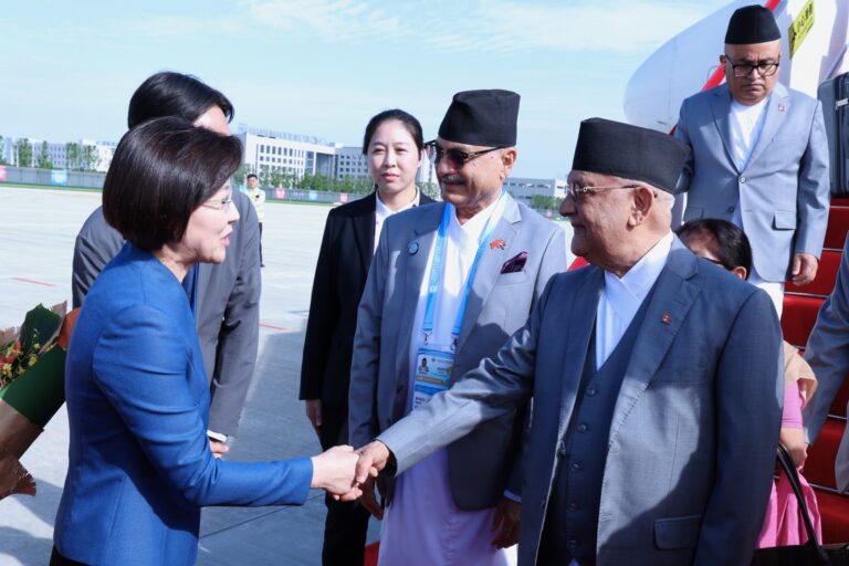 काठमाडौं, १४ भदौ । प्रधानमन्त्री केपी शर्मा ओली शाङ्घाई सहयोग सङ्गठन (एससिओ) को शिखर सम्मेलनमा सहभागी हुने सिलसिलामा चीन पुगेका छन् । राष्ट्रपति सी चिनफिङको निमन्त्रणामा २६ सदस्यीय प्रतिनिधिमण्डलको नेतृत्व गर्दै प्रधानमन्त्री ओली त्यहाँ पुगेका हुन् ।