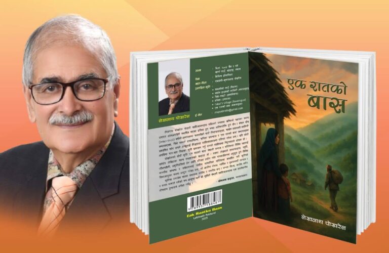 काठमाडौं । साहित्यकार लेखनाथ पोखरेलको नवीनतम् कृति ‘एक रातको बास’ पाठकमाझ आएको छ । यसअघि नियात्रासंग्रह ‘फकलीको गाउँ’, कथासंग्रह ‘मार्बल हाउसकी शालिनी’, हास्य-निबन्धसंग्रह ‘चिबे-नकटो’ र उपन्यास ‘वनिता’ जस्ता कृतिहरू प्रकाशित गरिसक्नुभएका पोखरेल दोस्रो कथासंग्रह लिएर पाठकमाझ आउनुभएको हो । उहाँको नियात्रासंग्रह ‘फकलीको गाउँ’ अंग्रेजी संस्करणमा पनि आएको छ ।